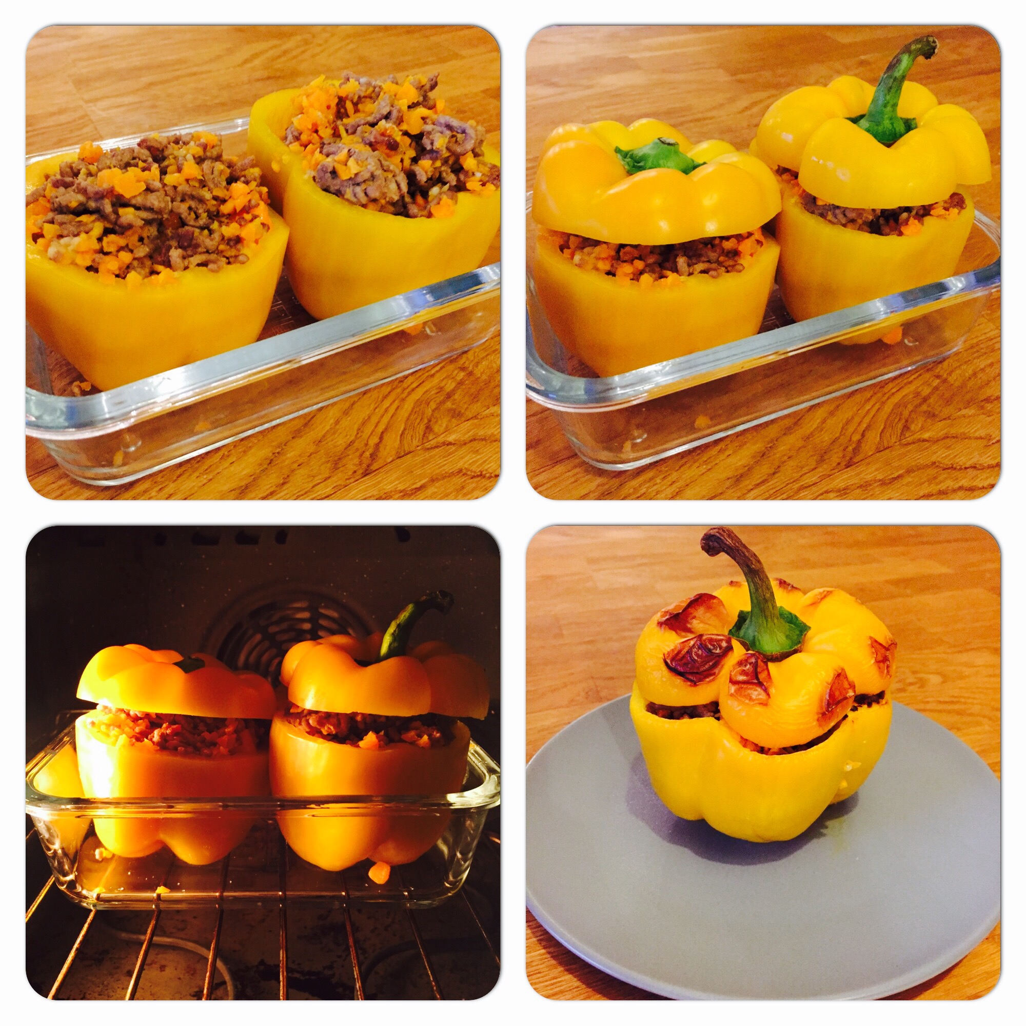 To stuff my peppers (I picked the yellow ones because I somehow find their taste less strong), I need it thick. I meanwhile pre-heated my oven (180°C) and after stuffing my peppers, I cook them for 7 minutes (only because I love them crunchy). My friend S. loves them well cooked so I am sure she would recommend you to cook them between 10 to 15 minutes. It is up to you, really.