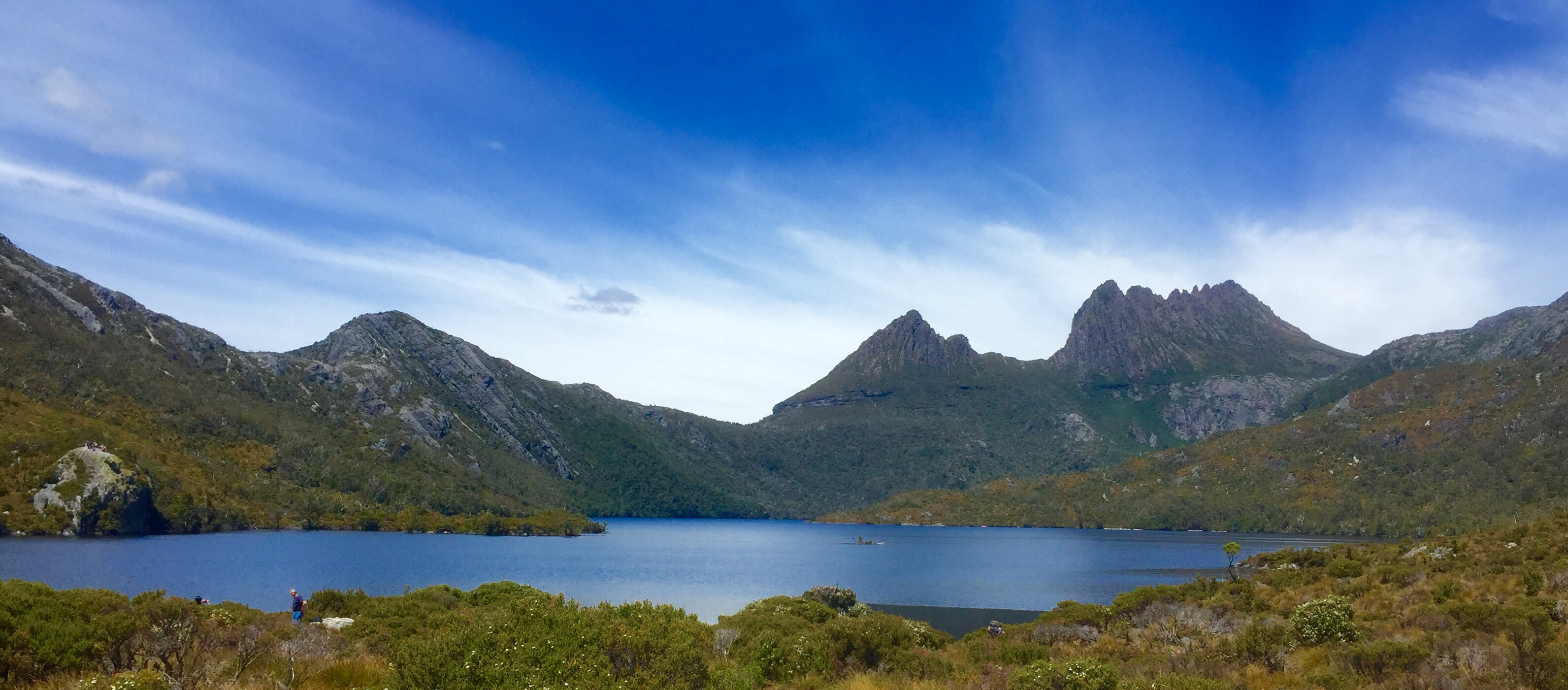 - Cradle mountain with its summit at 1545 meters / Trail we hiked: Dove car park to dove lake up to Marion’s look out (the steep way) to the summit. Down via face trail back to the dove car park / 17 km in 6 hours. Incredibly satisfying when your hike turns into a climbing challenge. Nothing better than to wonder where to put your foot next. Literally…