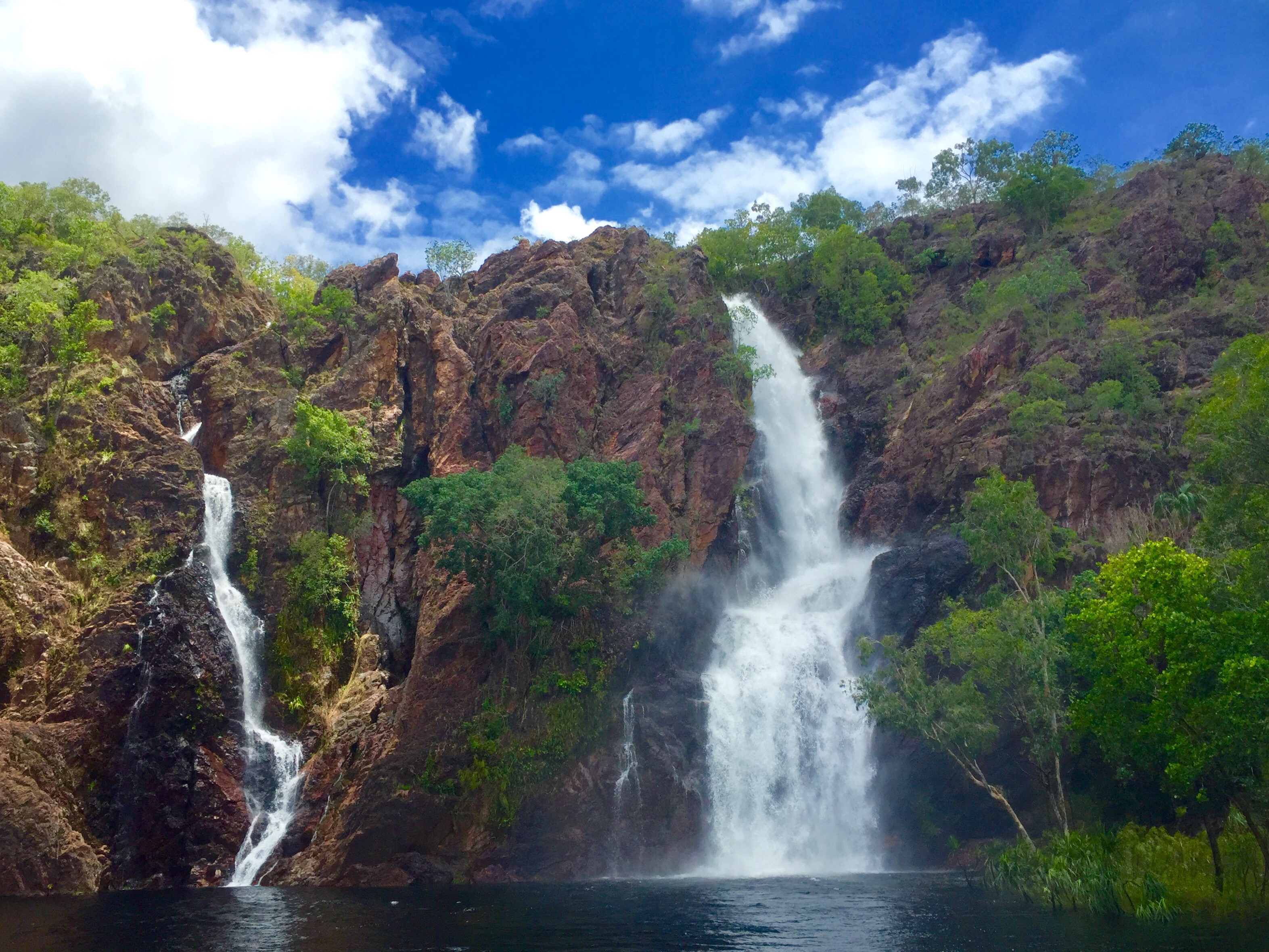 - Look at the Wangi falls: We couldn’t get too close (and certainly not in the water) because a 1.3 MT freshwater croco decided to move in during the wet season but the falls were peacefully powerful. We found a beautiful python, curled up in the sun, safely far enough. Majestic!