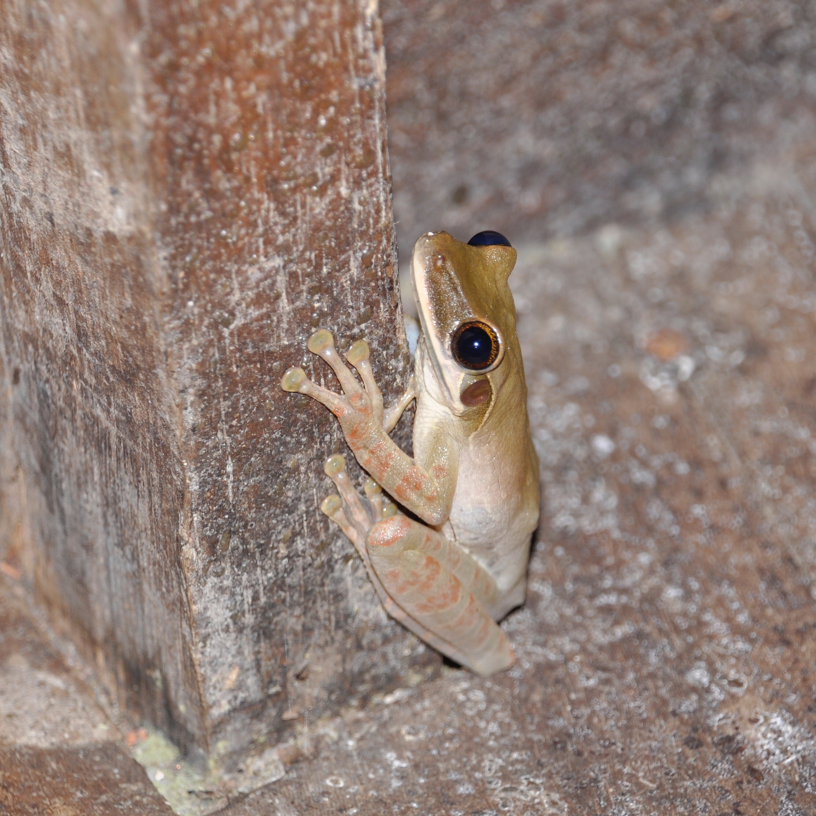 It was a relief when the flashlights were turned on again. We slowly made our way back to our canoe, grateful for this unique experience. On the way home, we looked for caimans but failed, being however rewarded by the presence of a dwarf boa on a tree, such a beauty! Back “home”, we decided to pay a visit to the tarantula, living with Shannen and Tim. We were excited to see this special guest but didn’t expect the two more that were hanging out even closer to our heads and they did cause some panic. The lodge guests had gathered around, fascinated and scared. Rom took one on his arm and tried to convince the crowd that tarantulas were not dangerous unless provoked or frightened. M and I decided to hold one because why not… We only (only?! Easier said than done) needed to calm down not to stress her. What an experience: the fear leaves your body while a tarantula is walking on you and it’s replaced by admiration and respect. The tarantula was so light and fluffy, it looked almost inoffensive! We went back to our private zoo: cockroaches and frogs waiting for us in our bungalow.